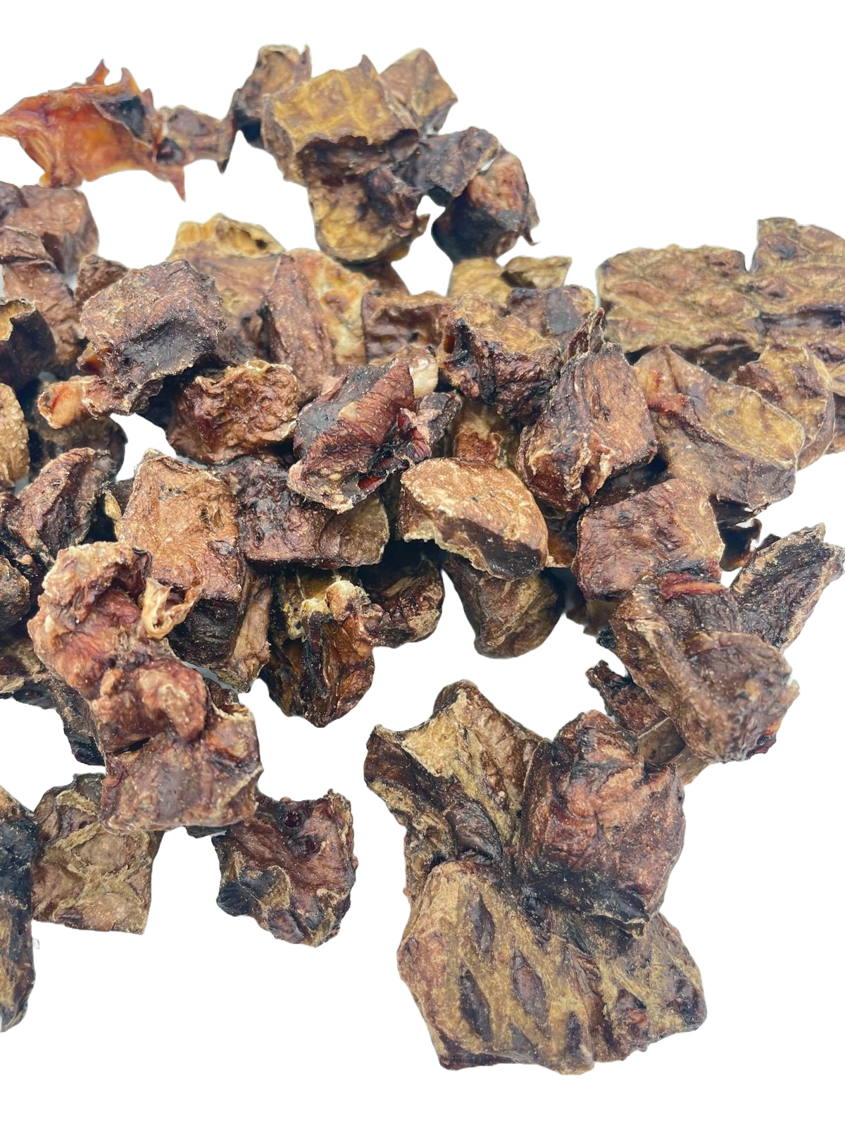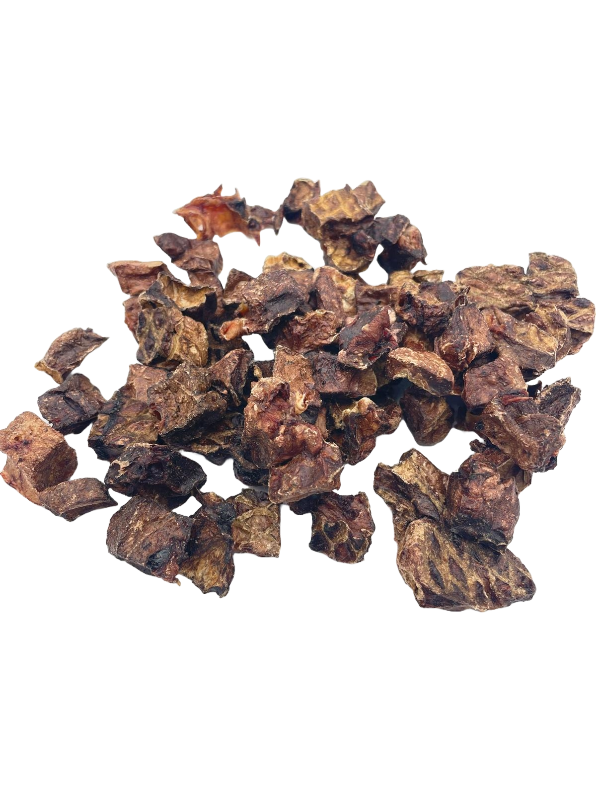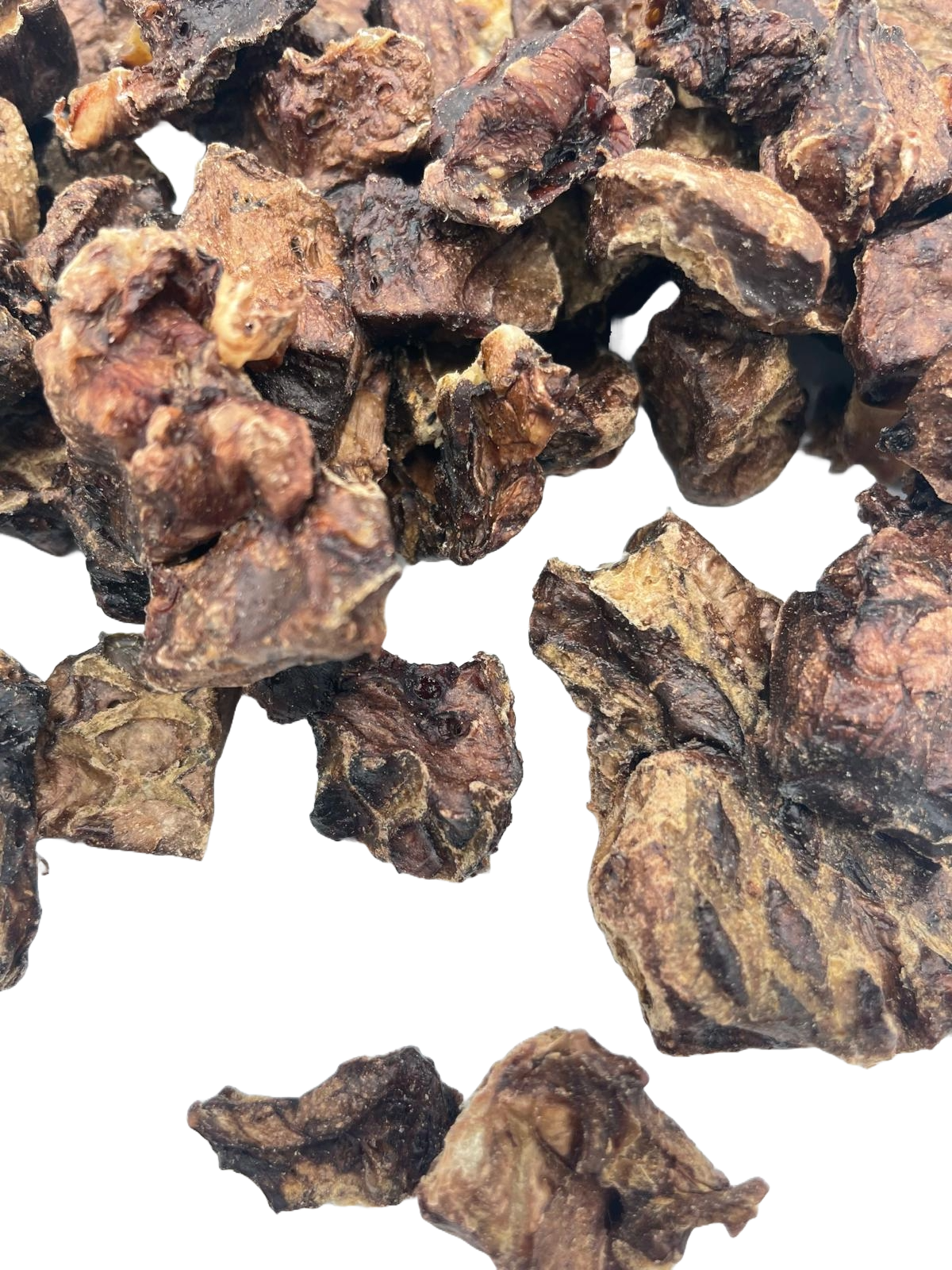 These dried beef lung trainers are a delicious snack for your dog. The snacks have a diameter of approximately 1-2 cm and are suitable as a practical reward for both small and large dogs.