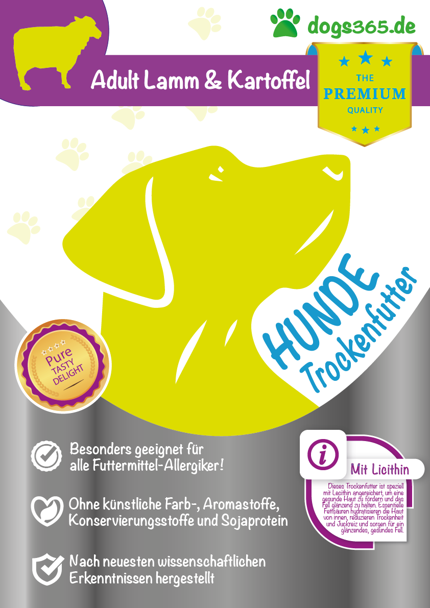 De dogs365.de Lam- en Aardappelkroket is een complete, graanvrije voeding, ontwikkeld volgens de nieuwste wetenschappelijke inzichten. Het voorziet uw hond van alles wat hij nodig heeft voor een gezond en vitaal leven – volledig vrij van kunstmatige kleur-, smaak- of conserveringsmiddelen.