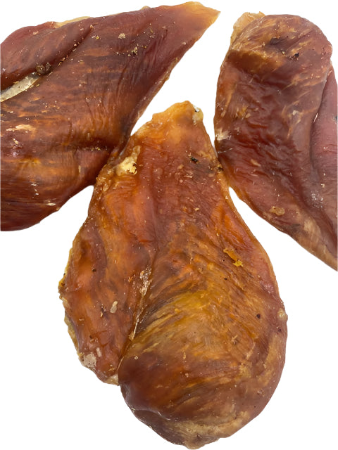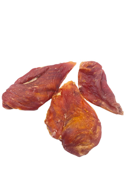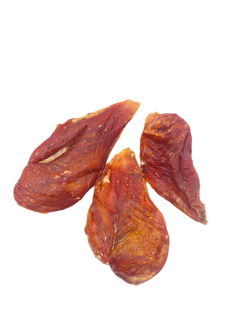 Onze kipfilet wordt zorgvuldig gedroogd om de houdbaarheid te verlengen zonder smaak of voedingsstoffen te verliezen. De natuurlijke, intense kipsmaak blijft behouden, wat zorgt voor een bijzonder smakelijke en licht verteerbare traktatie . Het is bovendien vrij van kunstmatige toevoegingen en conserveermiddelen .