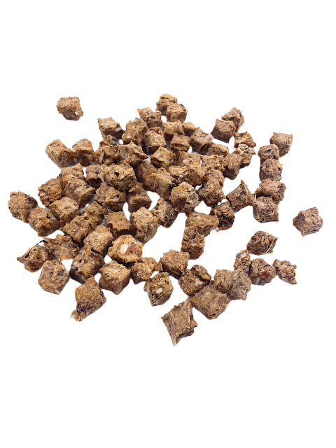 Onze Fish Mini Cubes met Zalm zijn de ideale snack voor tussendoor – of het nu een kleine beloning is tijdens de training of gewoon als lekkere snack. Deze blokjes, gemaakt met magere vis en fijne zalm , zijn niet alleen bijzonder eiwitrijk, maar ook licht verteerbaar , waardoor ze perfect zijn voor voedingsbewuste honden.