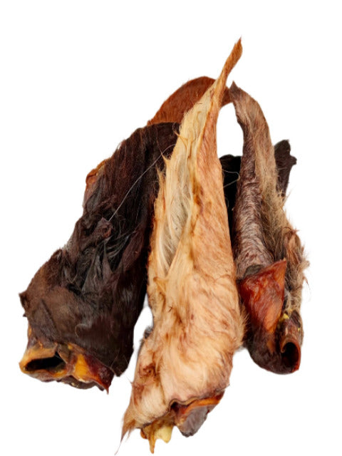 Unsere getrockneten Pferdeohren mit Fell sind ein gesunder und natürlicher Kausnack. Sie sind fettarm, gut verdaulich und ideal für Hunde mit Futtermittelallergien.